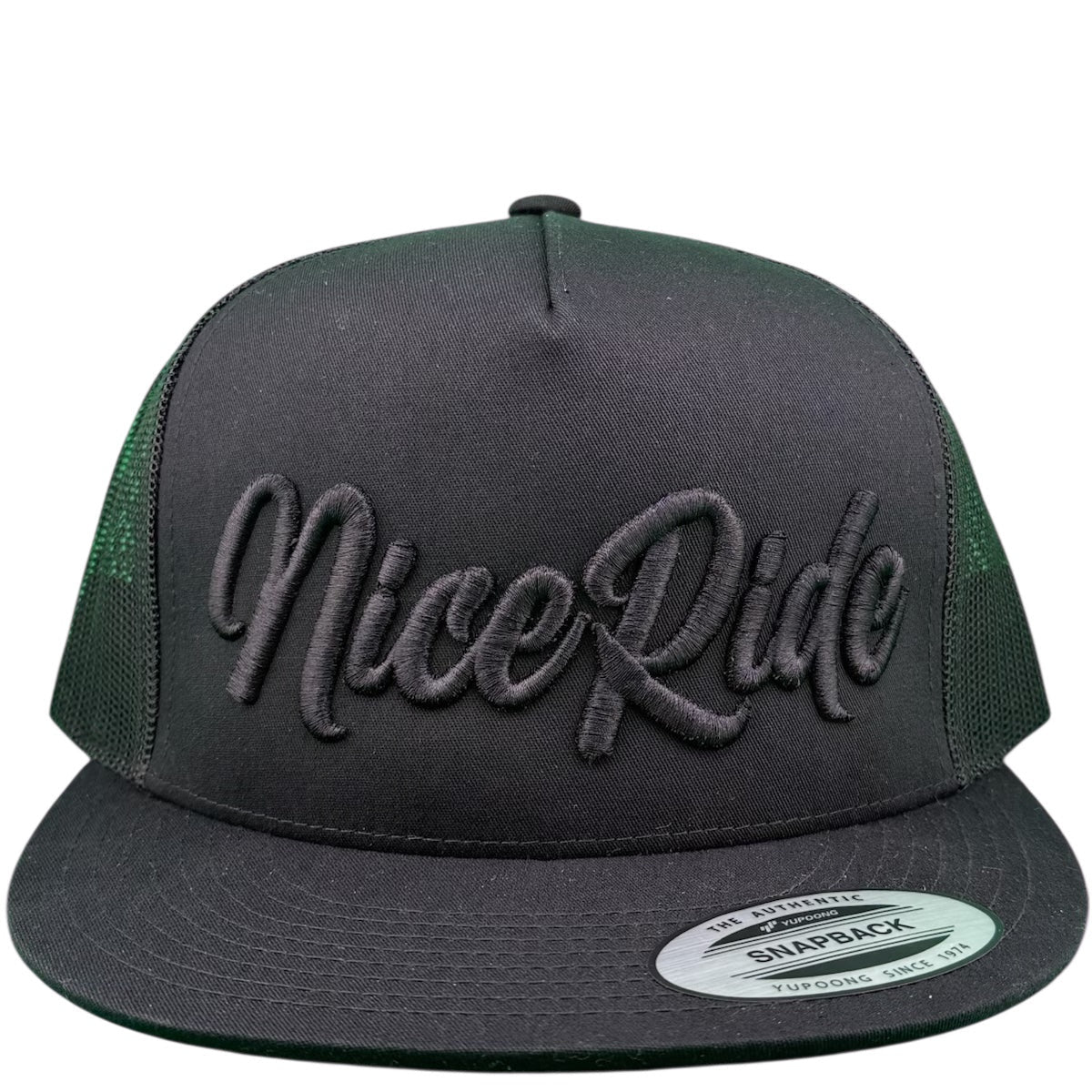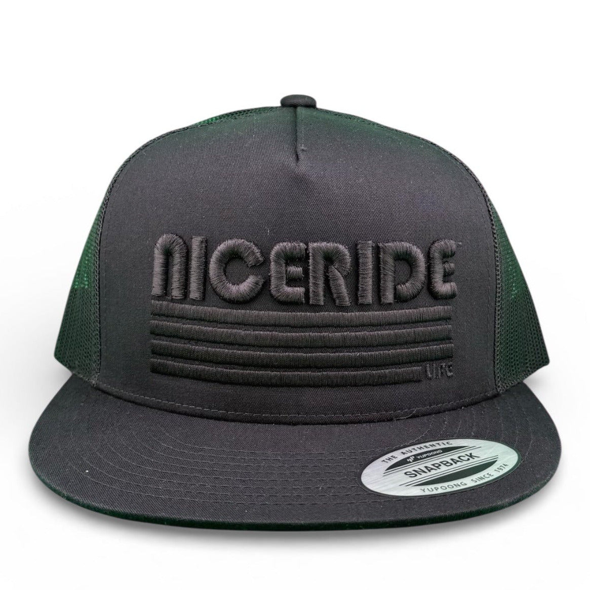 NICERIDE’s "Maze" 6006 Classic Snapback Trucker Hat is a premium unisex baseball cap designed for style, comfort, and everyday wear. Featuring NICERIDE’s bold Maze design embroidered on the front panel in your choice of striking green or stealthy blacked-out thread, and the Blacked Out Classic Palm Logo embroidered on the back, this hat delivers a clean yet statement-making look.