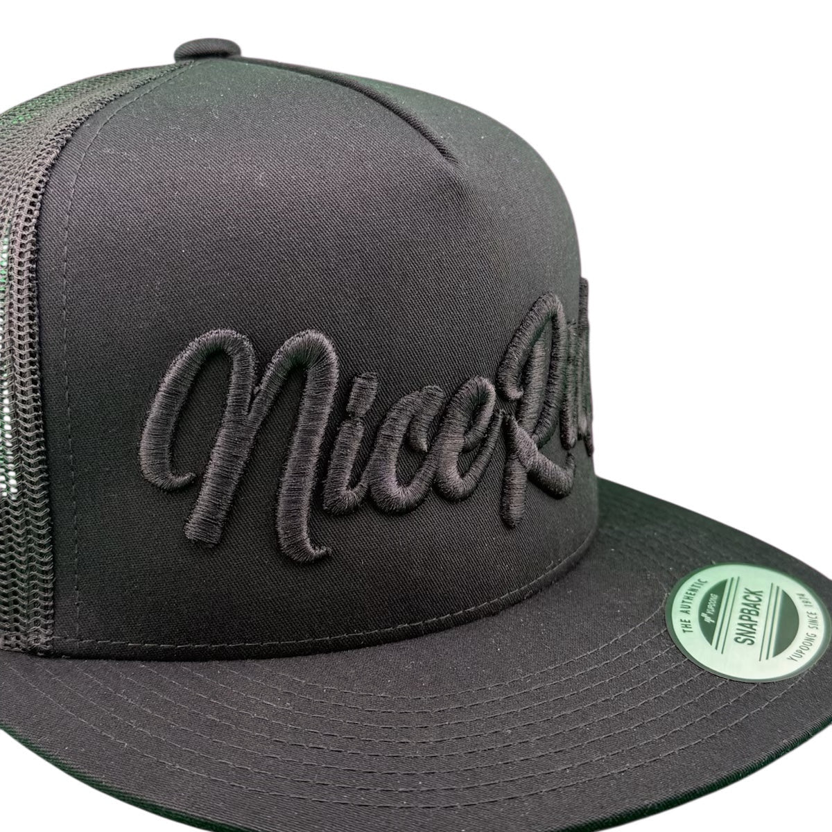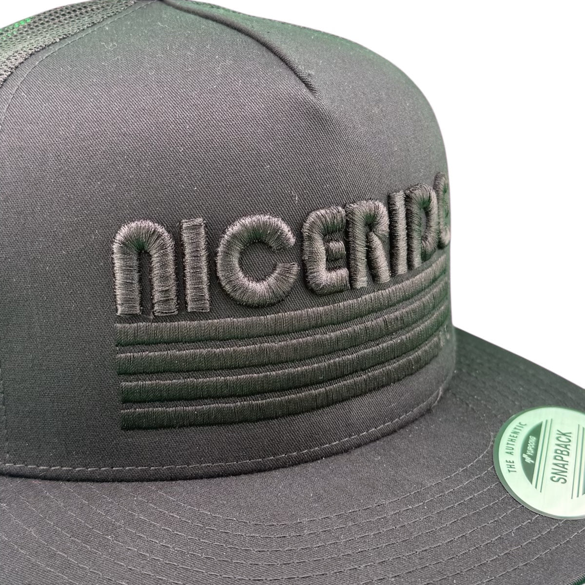 Blacked Out Classic Palm Logo – embroidered on the back for authentic NICERIDE branding.