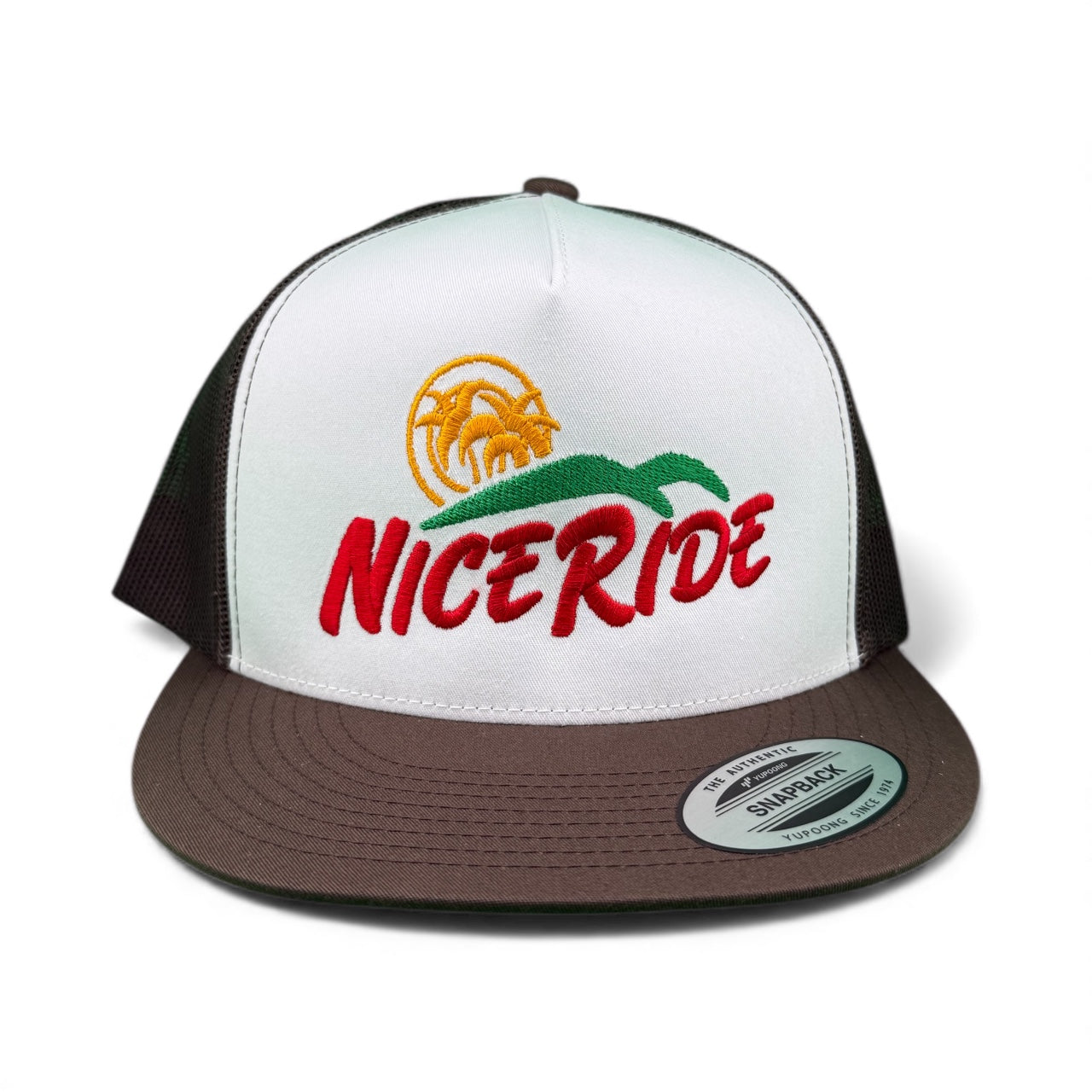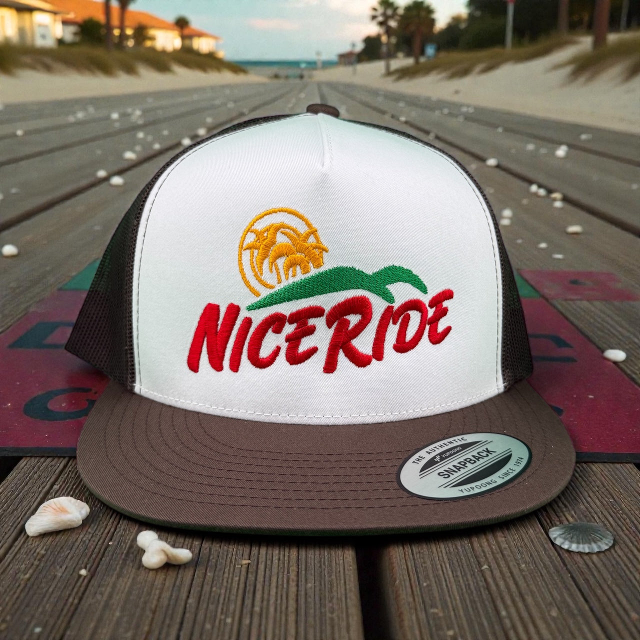 Join the style elite with the NICERIDE “Vader” Trucker Hat, built on the premium 6006 Classic Snapback design for comfort, durability, and year-round wear. This unisex baseball cap features the “Vader” logo embroidered on the structured front panel and the signature NICERIDE Palm logo stitched on the back right side, giving you an authentic, coastal-inspired look from every angle.