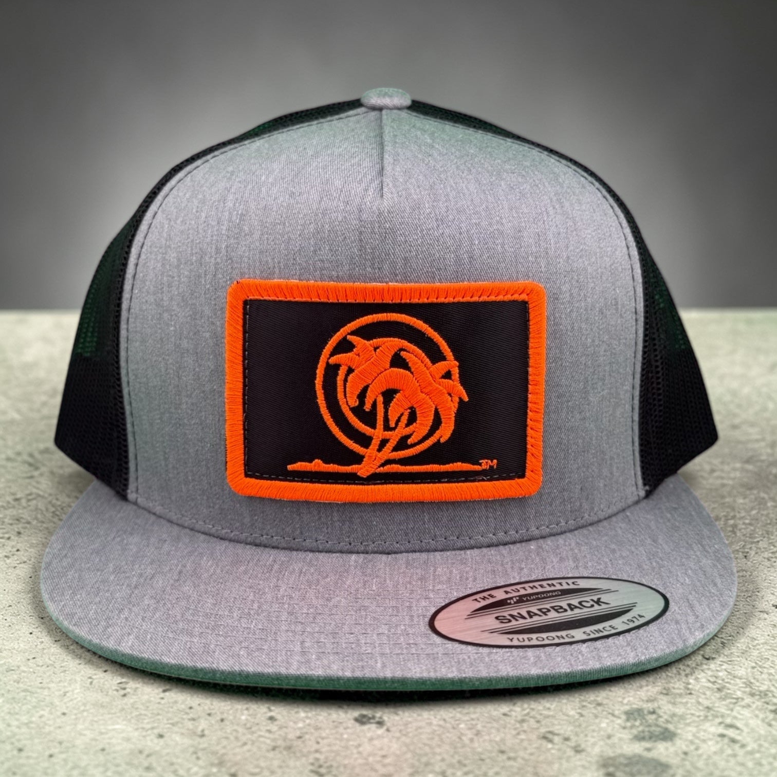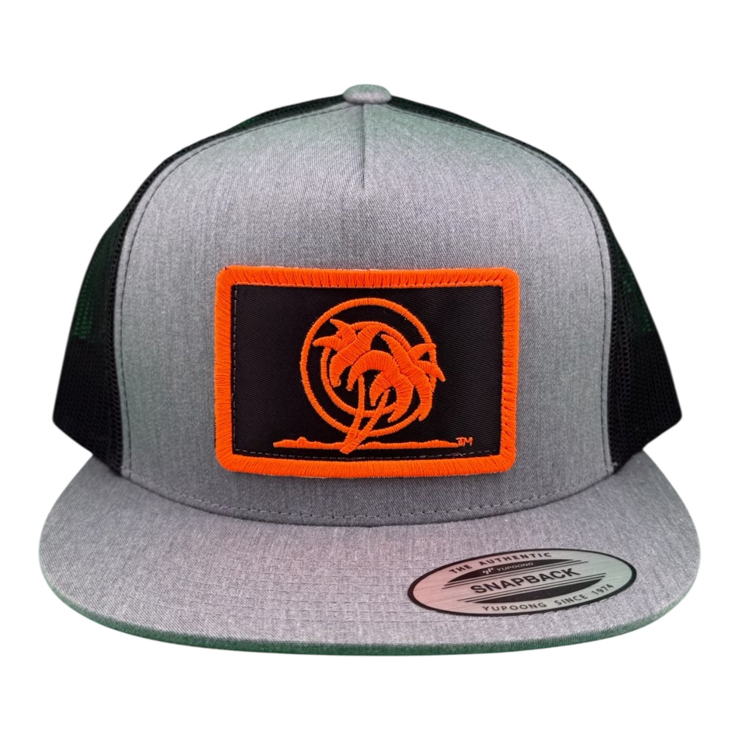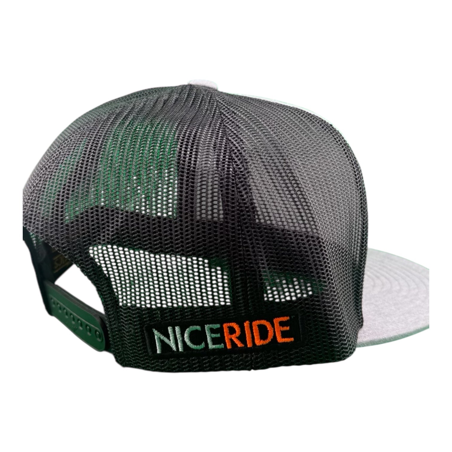 6006 Classic Snapback Trucker Hat, Baseball Cap, with NICERIDE's Classic Palm Patch embroidered on the front panel and NICERIDE embroidered on the right side.